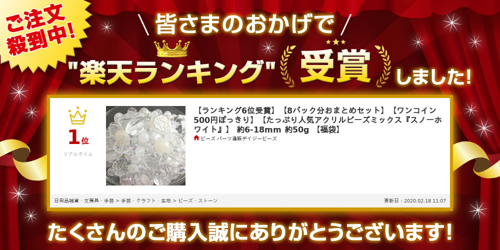 【ランキング1位受賞】【8パック分おまとめセット】【ワンコイン500円ぽっきり】【たっぷり人気アクリルビーズミックス『スノーホワイト』】 約6-18mm 約50g 【福袋】